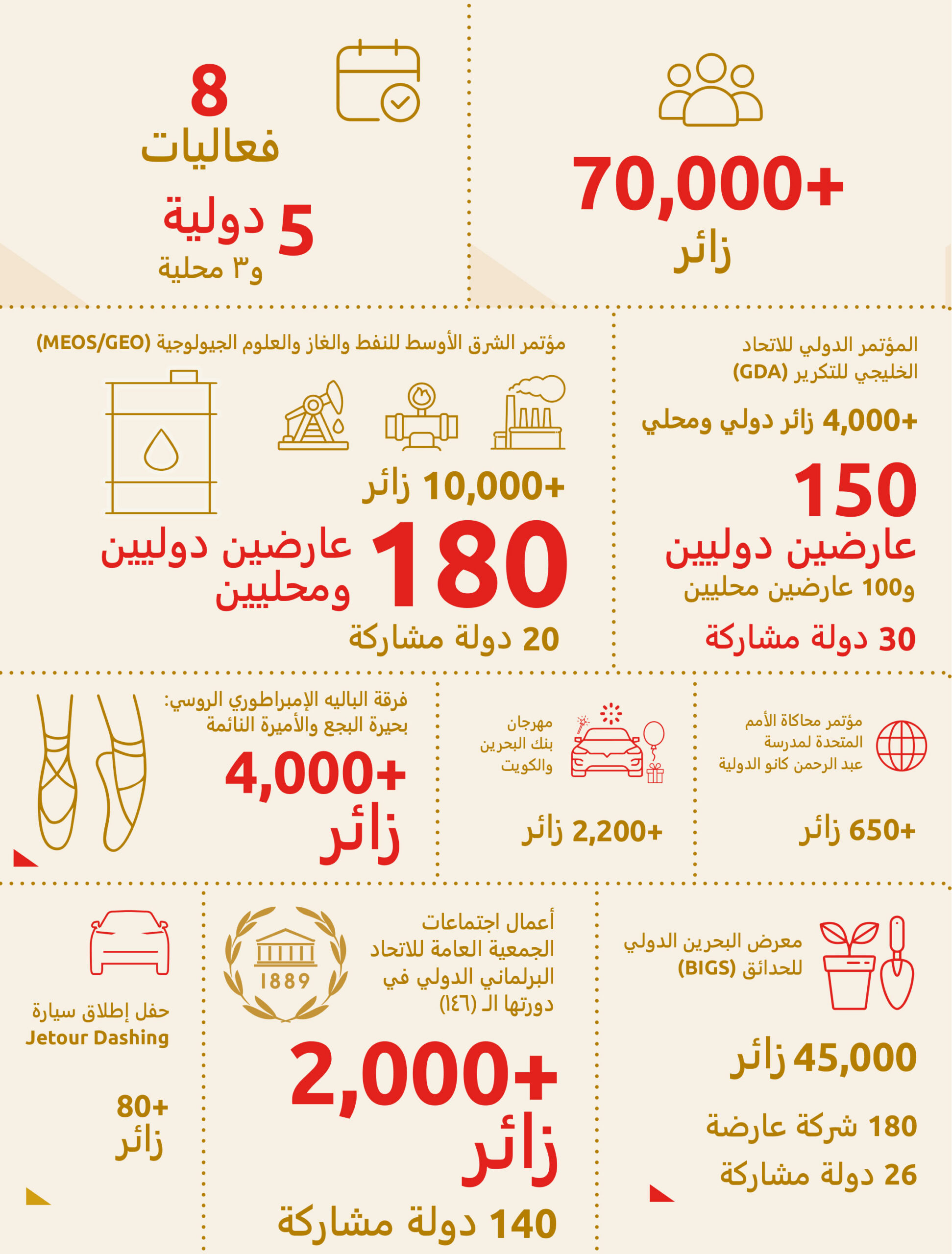 مركز البحرين العالمي للمعارض يستقبل أكثر من 70,000 زائر في الربع الأول من 2023 ضمن استضافته لفعاليات وعروض عالمية